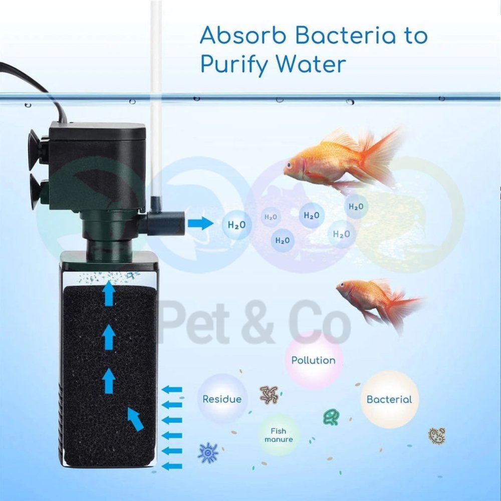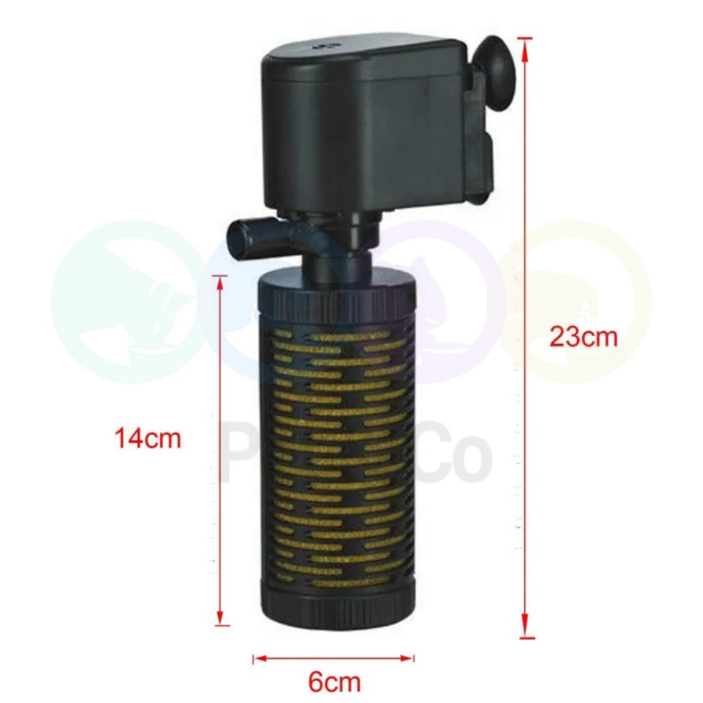 Designed to be compact, with dimensions 10cm long, 23cm high and 6cm wide, it easily fits any aquarium. Its sponge filtering material allows for easy cleaning and practical maintenance, making it an accessible option for aquarists of all levels.