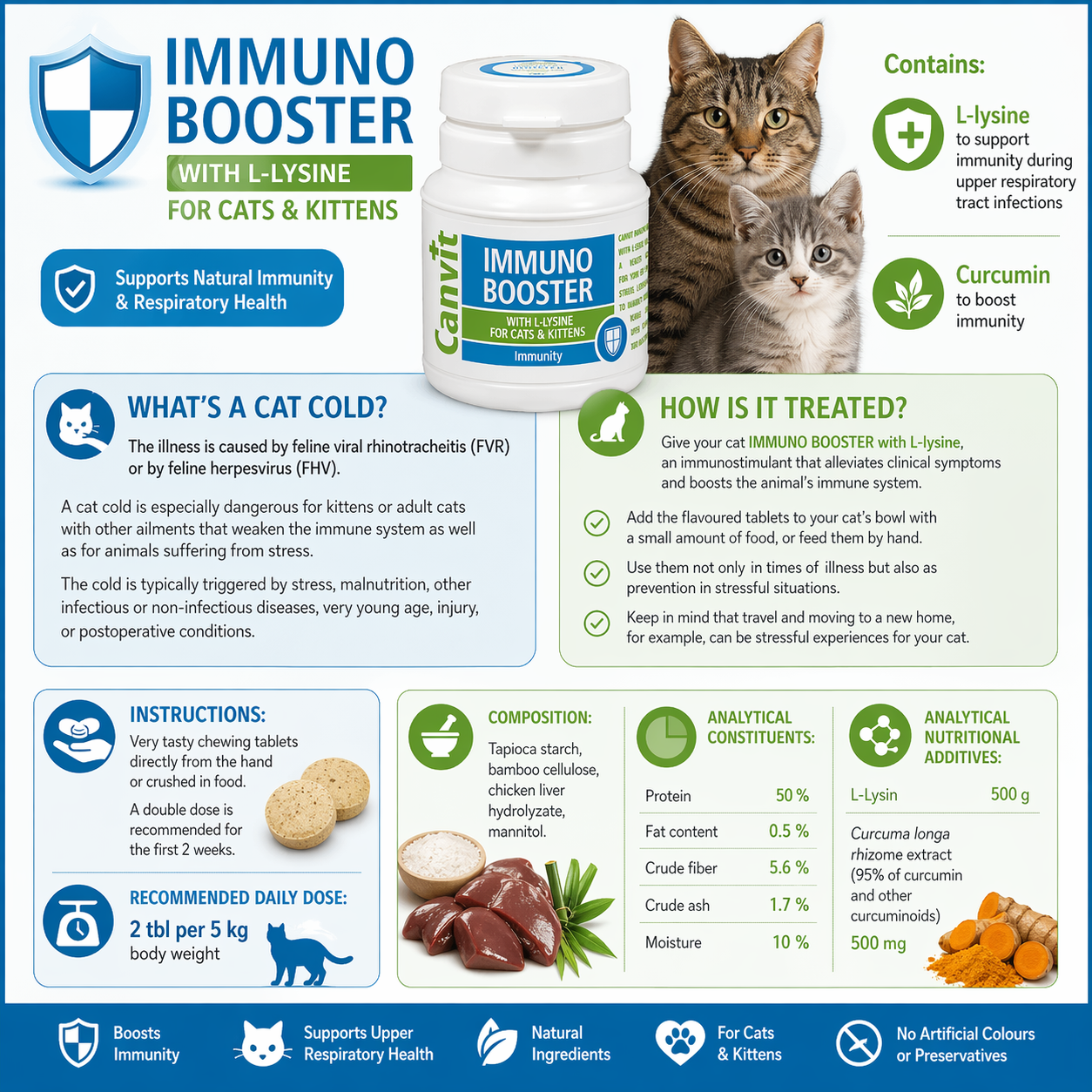 Give your cat IMMUNO BOOSTER with L-lysine, an immunostimulant that alleviates clinical symptoms and boosts the animal’s immune system.