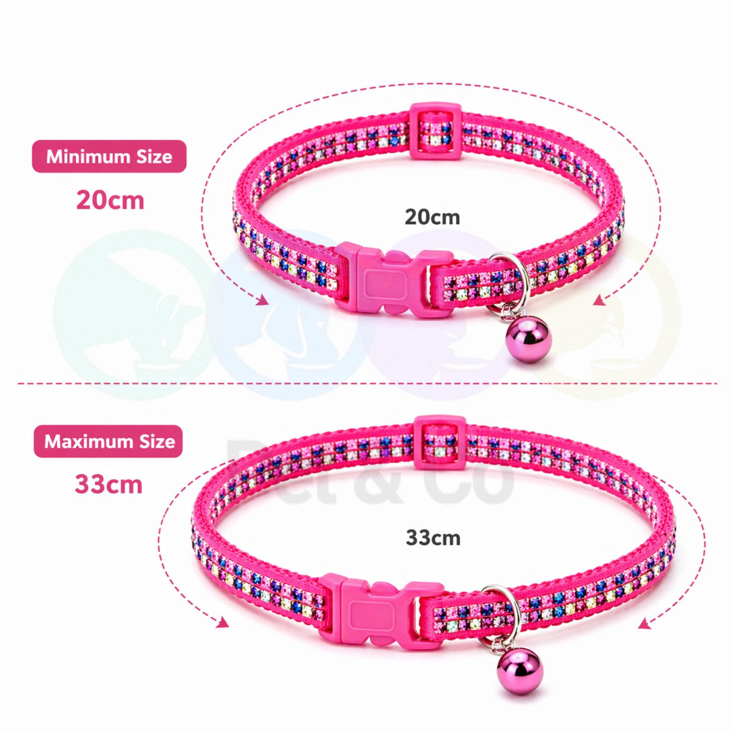 Sparkly Pink Rhinestone Pet Collar with Bell – Adjustable Cat & Small Dog Collar
