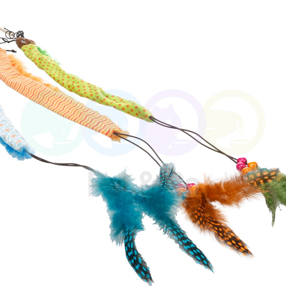 Let your cat go hunting and playing with the Toy Kirk Wand Caterpillar! This wooden wand with fabric toy stimulates your cat’s hunting instinct. With a crinkling sound, beads, ribbons, and feathers for extra playtime fun. Available in multiple colors.
