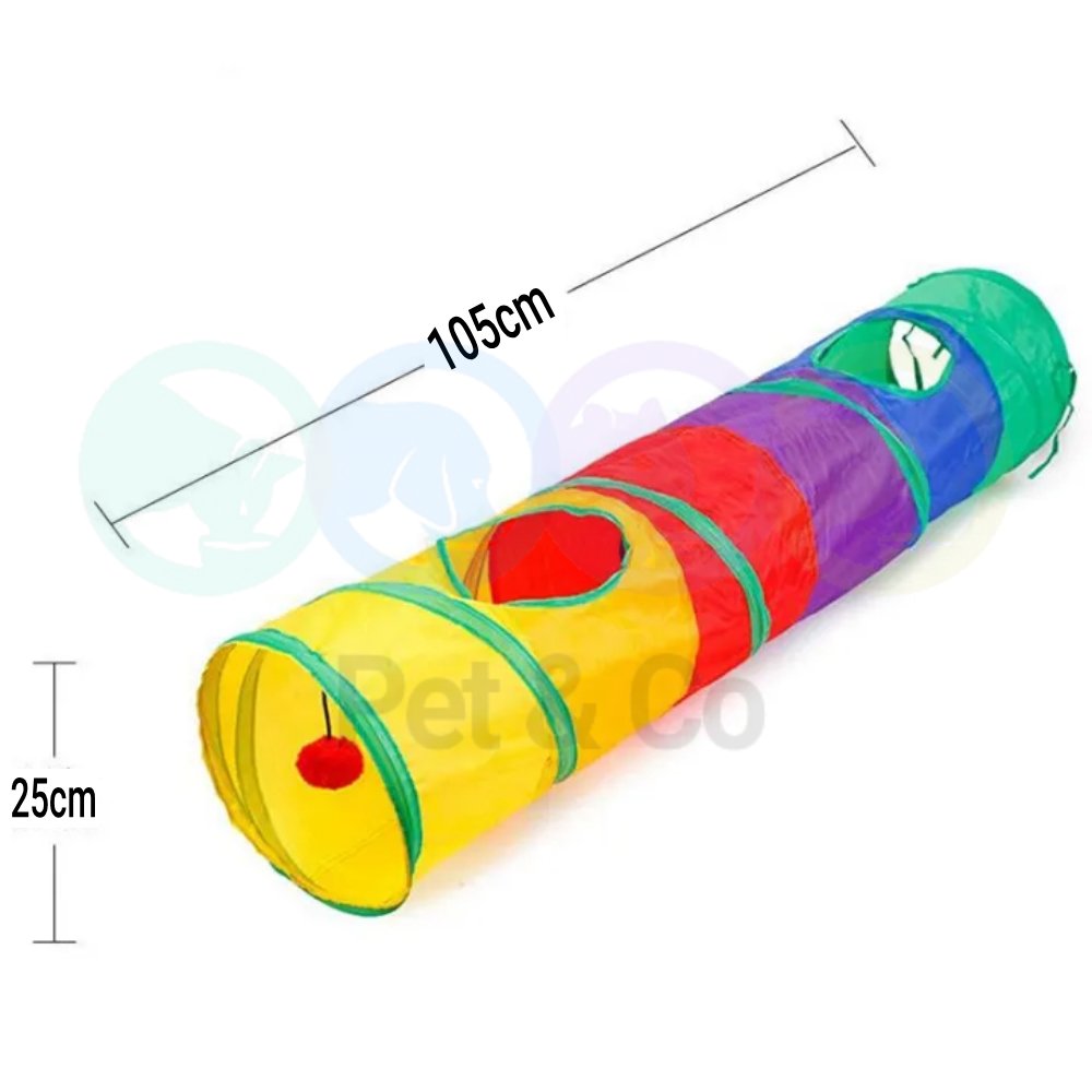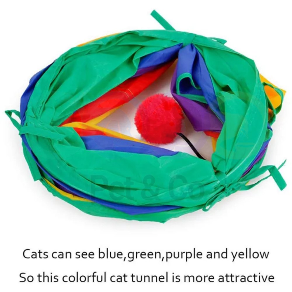 Cats can see rainbow appearance and spacious tunnel, built-in crinkle crackle paper, and soft ball toy,also have two peek hole, this popular tube gives your kitty more ways to have fun. It provides hours of exercise and self-amusement.