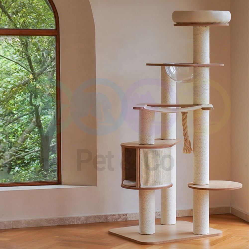 Bring modern style and multi-level fun to your cat’s daily routine with this sleek, Scandinavian-inspired cat tree. Designed with clean lines, warm wood tones, and durable scratching posts, it’s the perfect blend of comfort, play, and home décor.