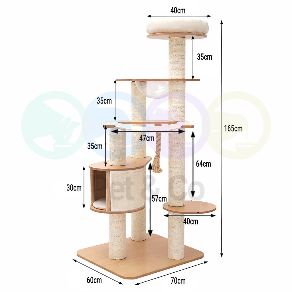 Built for stability with a wide 70 x 60 cm base and a sturdy 165 cm height, this cat tree is ideal for curious climbers, scratchers, and loungers alike. The thick sisal-wrapped posts help protect your furniture and encourage healthy scratching habits.