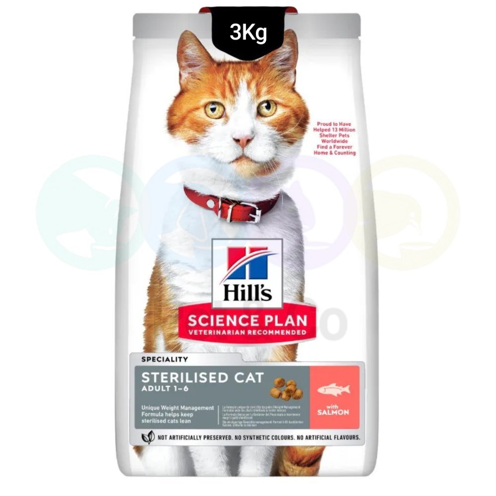 Hill’s Science Plan Sterilised Adult Cat Food with Salmon is a complete pet food for sterilised adult cats aged 1 to 6 years.
