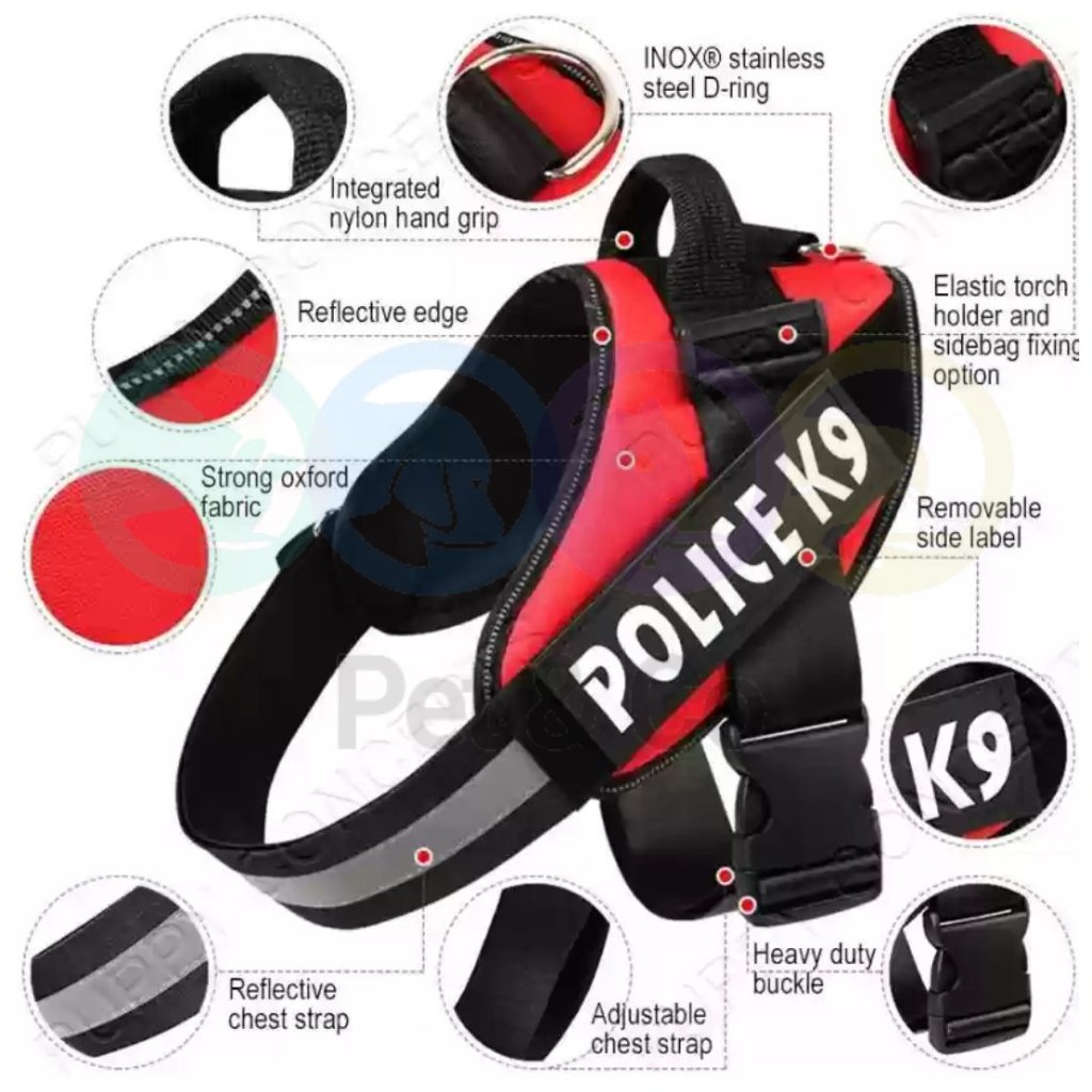 Upgrade your dog’s safety, control, and style with this durable Police K9 dog harness, designed for training, walking, and everyday use. Built with strong Oxford fabric and reinforced stitching, this harness provides maximum comfort and control for small to large dogs.