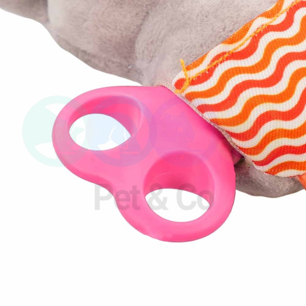 It has multi textures – plush & rubber, for added interest with a hidden squeaker for extra playtime fun.