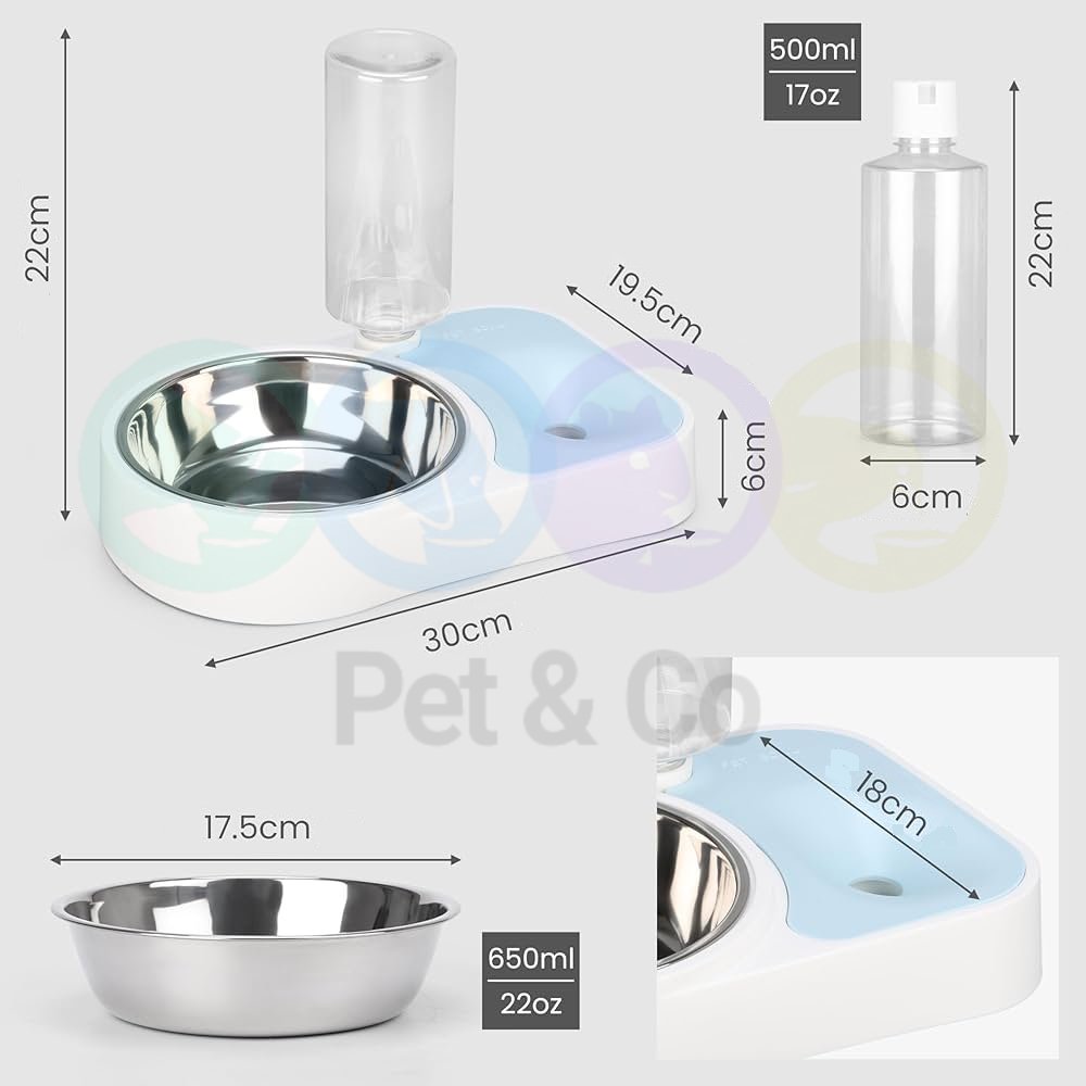 - PET BOWLS & WATER DISPENSING BOTTLE: 2 in 1 design, the water dispenser automatically fills the water in the dish, which keeps clean water available to your pets even when you are not at home.