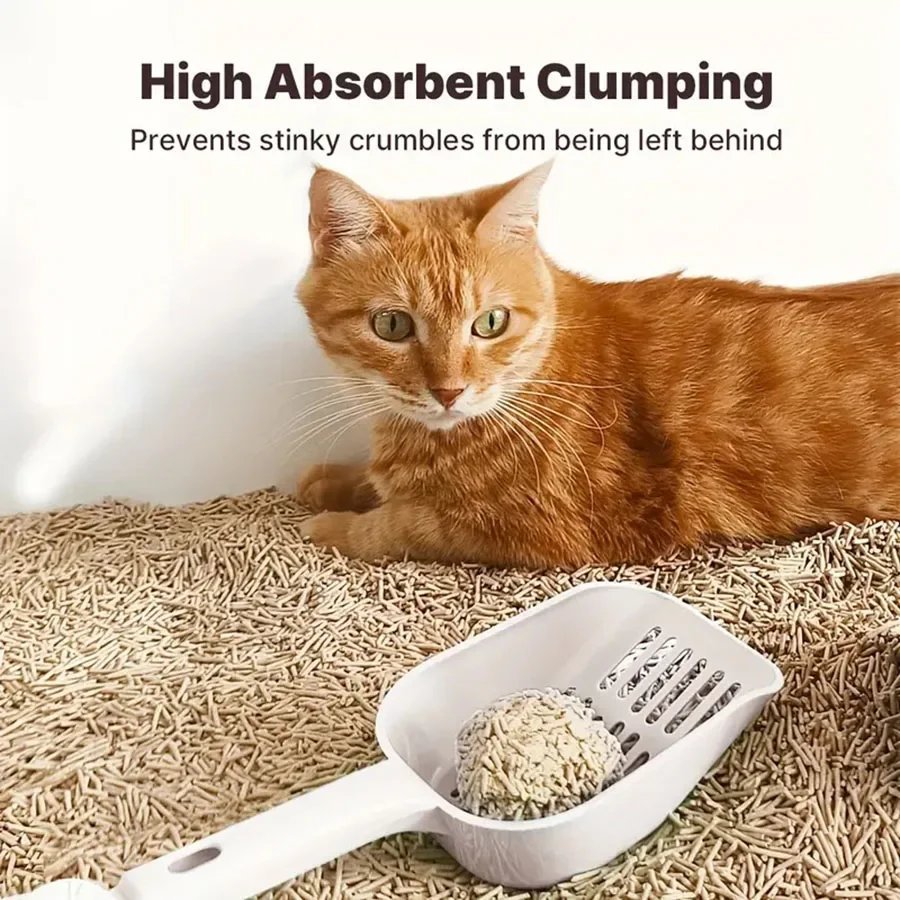 Composed primarily of tofu, derived from soy, and cornstarch, this agglomerating litter of plant origin is completely non-toxic and does not release dust.