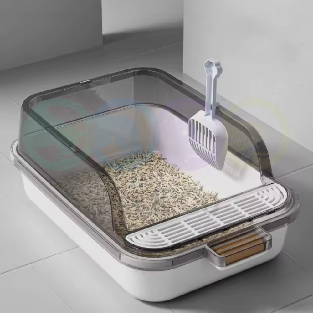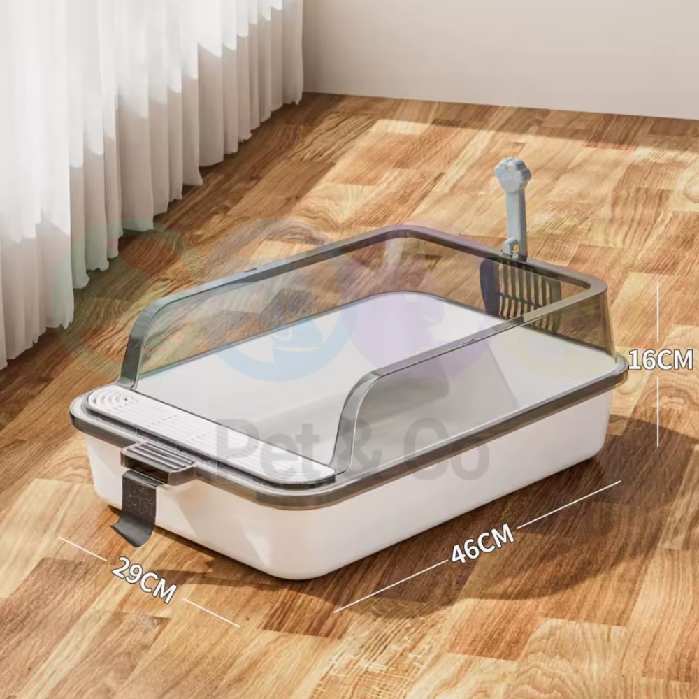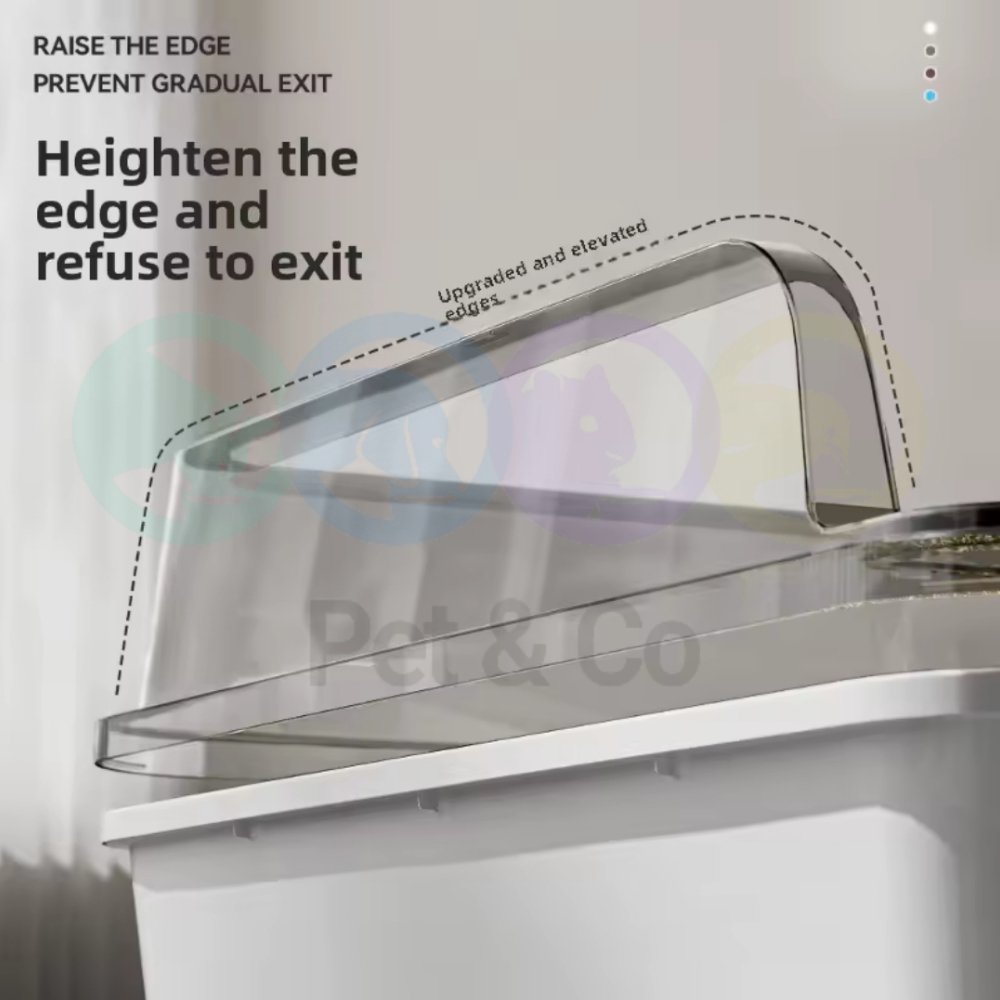 RAISED ENCLOSURE: This litter tray has a raised top and a double barrier design to effectively prevent your cat from bringing out litter and urine when it jumps out, giving you a clean home environment