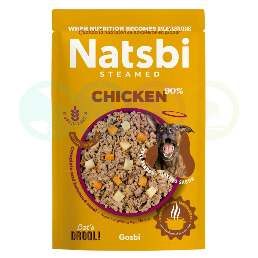 Chicken* (90%), vegetables* (6%) (carrot* (5%), potato* (1%), fresh apple* (1%), salmon oil (1%), dried blueberries* (0.5%), carob* (0.4%), mineral substances, chicory inulin (1 g/kg), yeast products (400 mg/kg). *Natural ingredients