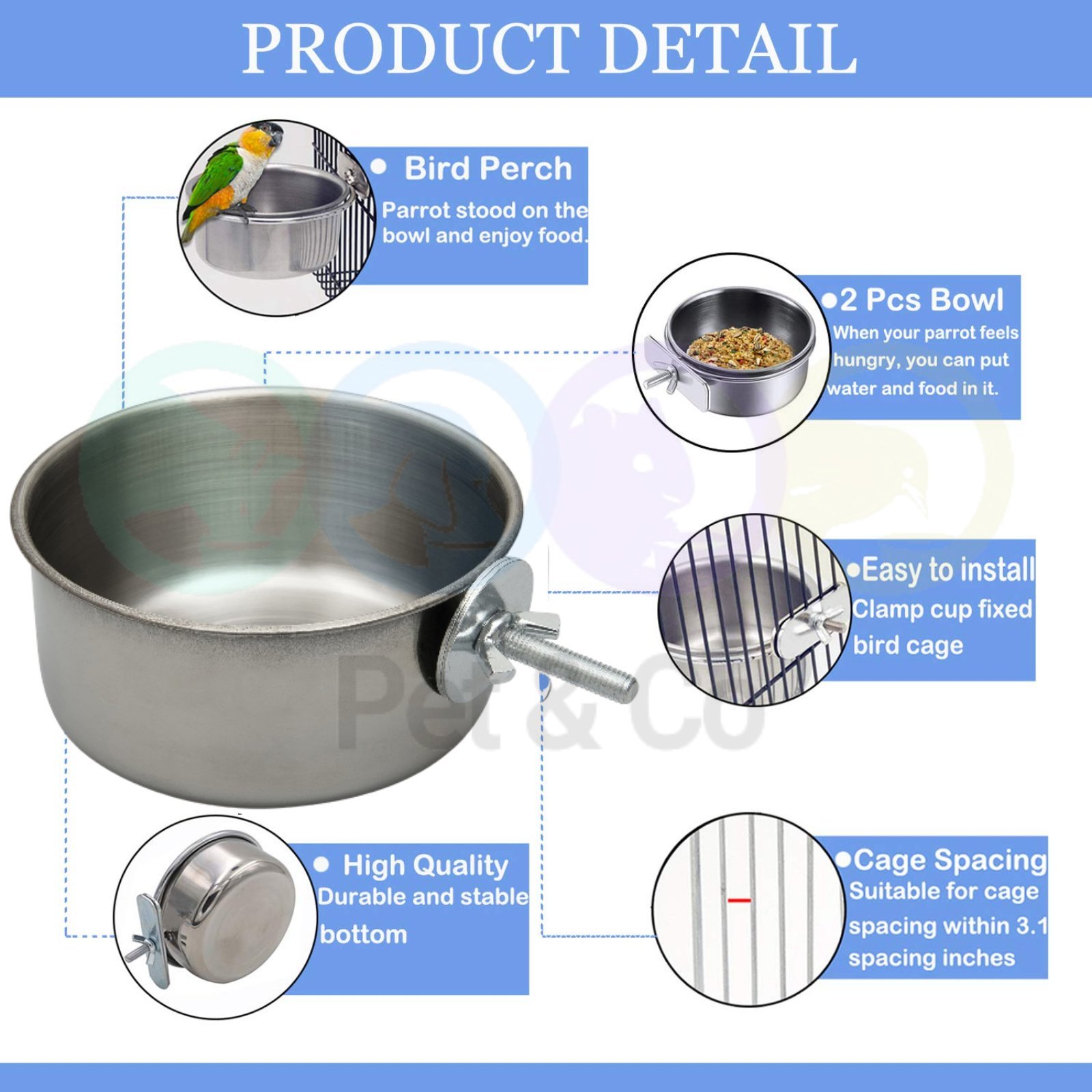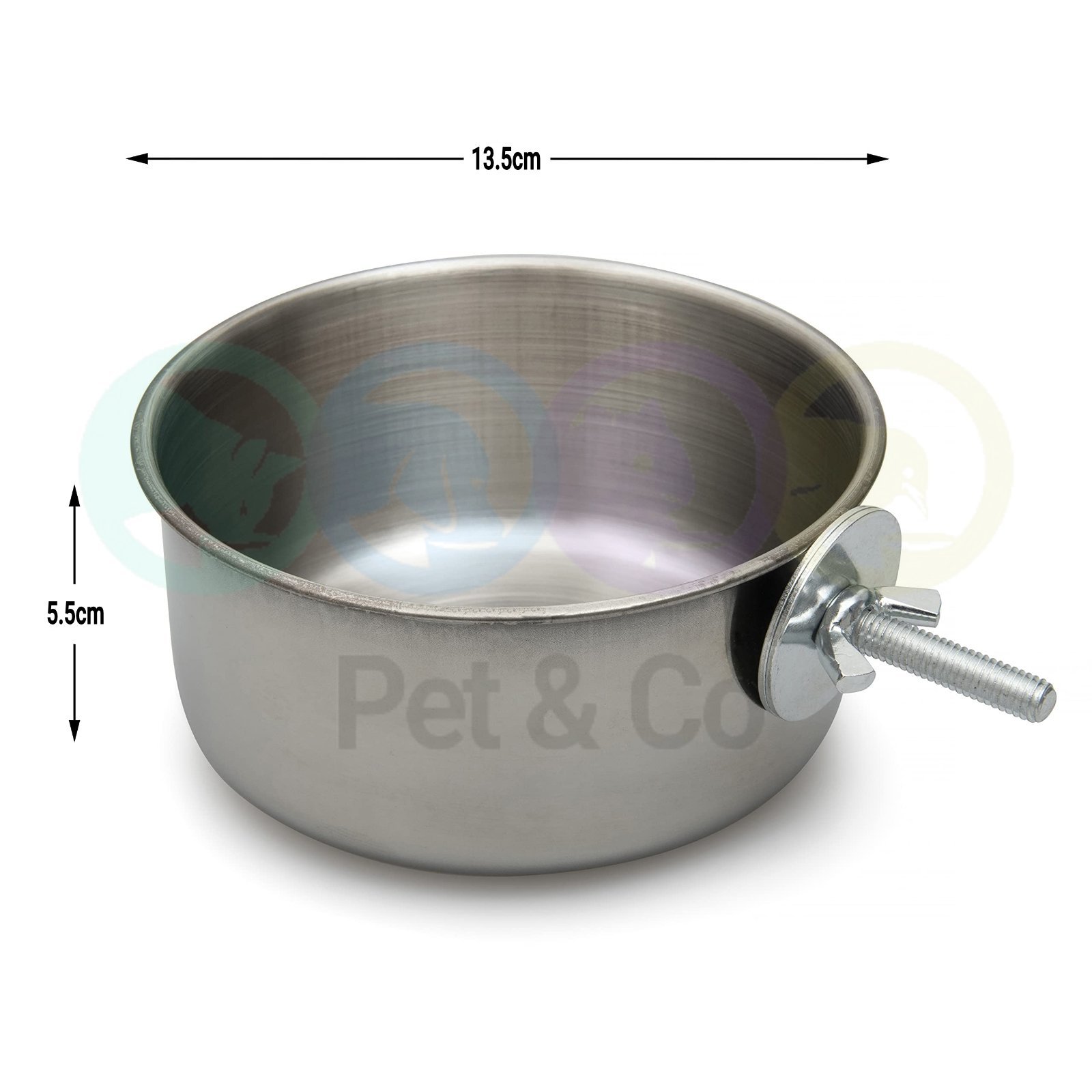 This stainless steel bowl is available in different sizes and is ideal for complementing any basic equipment. The included holder allows easy attachment to any standard cage