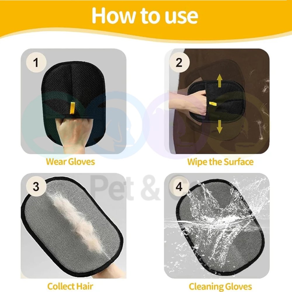 The dual-sided design provides powerful hair removal while remaining gentle on delicate materials. Simply slide your hand into the comfortable strap and wipe across surfaces to collect pet hair instantly. No batteries, sticky tapes, or disposable refills are needed — making it an eco-friendly and cost-effective solution for pet owners.