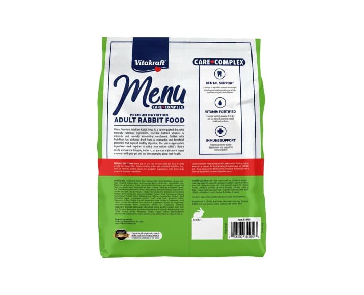 Satisfy your rabbit’s craving for healthy, delicious food with Vitakraft Menu Alfalfa Pellets Blend Vitamin & Mineral Fortified Premium Rabbit Food! These tasty tidbits of nutrition are packed with a beneficial blend of grasses, fruits, and vegetables like alfalfa, carrots, beets, and mountain ash berry. While they are fortified with plenty of beneficial vitamins and minerals on their own, these pellets can best support your rabbit’s health with the help of additional healthy sides like lettuce and hay. Simply serve as part of your little bunny’s diet and watch him reap the healthy benefits!